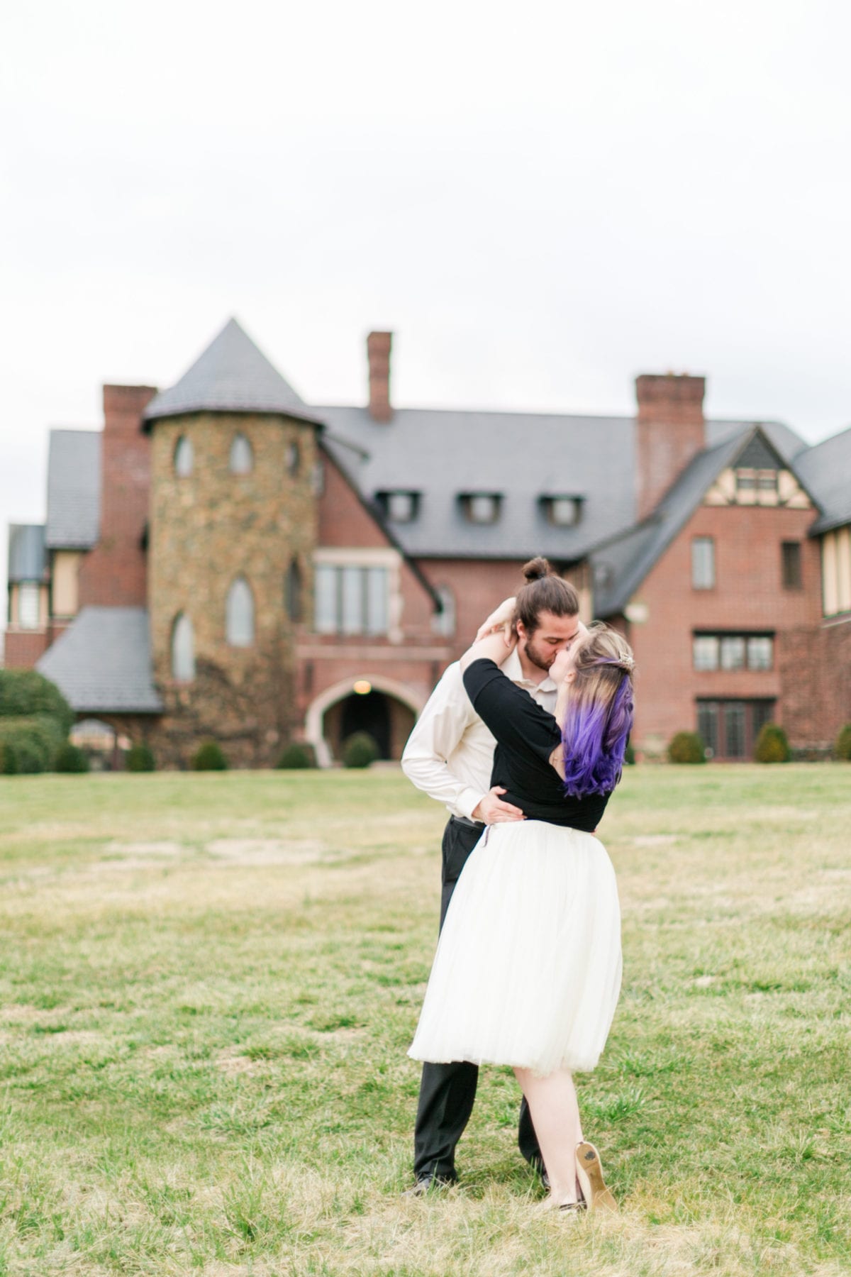 So the “facing each other” pose goes something like this: “Now I’m going to have you two face each other… toes facing each other’s toes, holding hands at the bottom. Now step in really close! Bring your hips together…yep! Now Mike, put your hands around Halie’s waist and pull her in even closer!! There you go! Halie, place your hands on Mike’s face and pull him in slowly like you’re about to give him a kiss. Now bring your foreheads together… it’ll look like you have one eye but nobody has to know that’s what you were seeing! Haha!!” (As I’m talking through all of this, I’m shooting the entire time!)