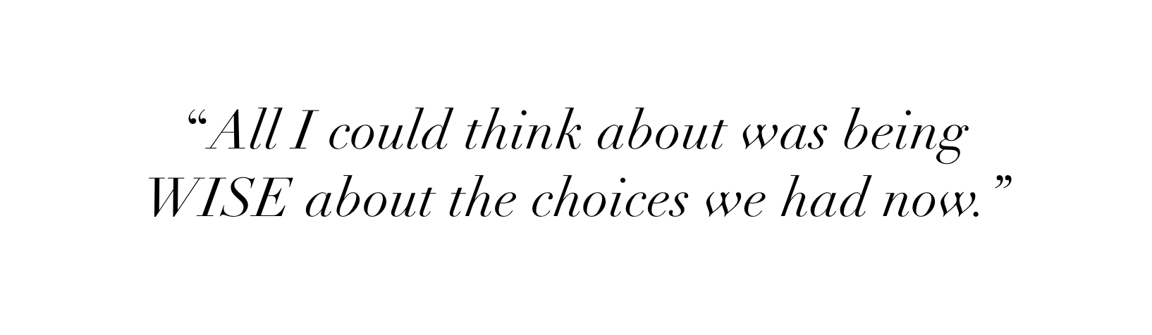 All the changes, the planning, the decisions, the wisdom required… all I could think about as we were home shopping was being WISE about the choices we had now. I had so many questions:
