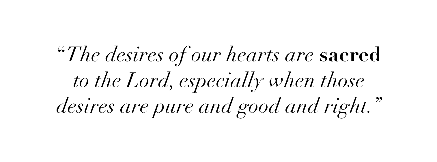 The desires of our hearts are SACRED to the Lord, especially when those desires are pure and good and right.