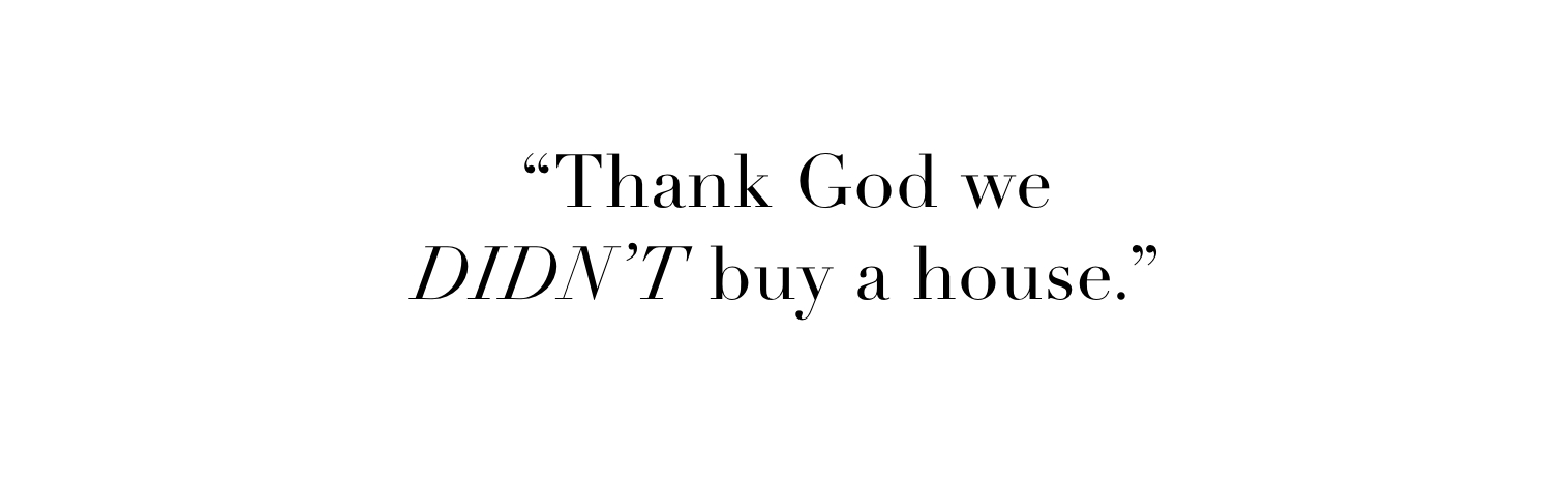 Why did he give us such hesitation to buy when maybe we should have? When we COULD have? When on paper, it would make total sense to have bought a house?? Why was this so difficult for us? What was wrong with us? What was wrong with me?
