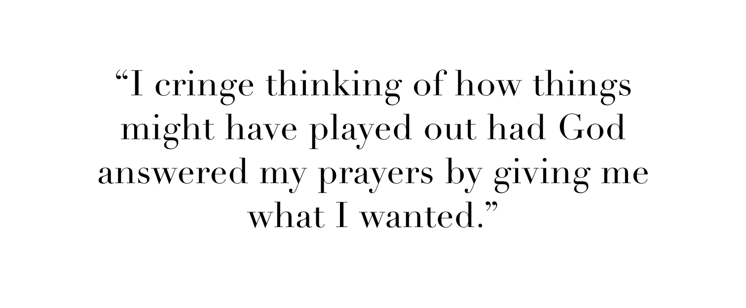 I cringe thinking of how this might have played out any other way. If God had answered my prayers by giving me what I wanted.