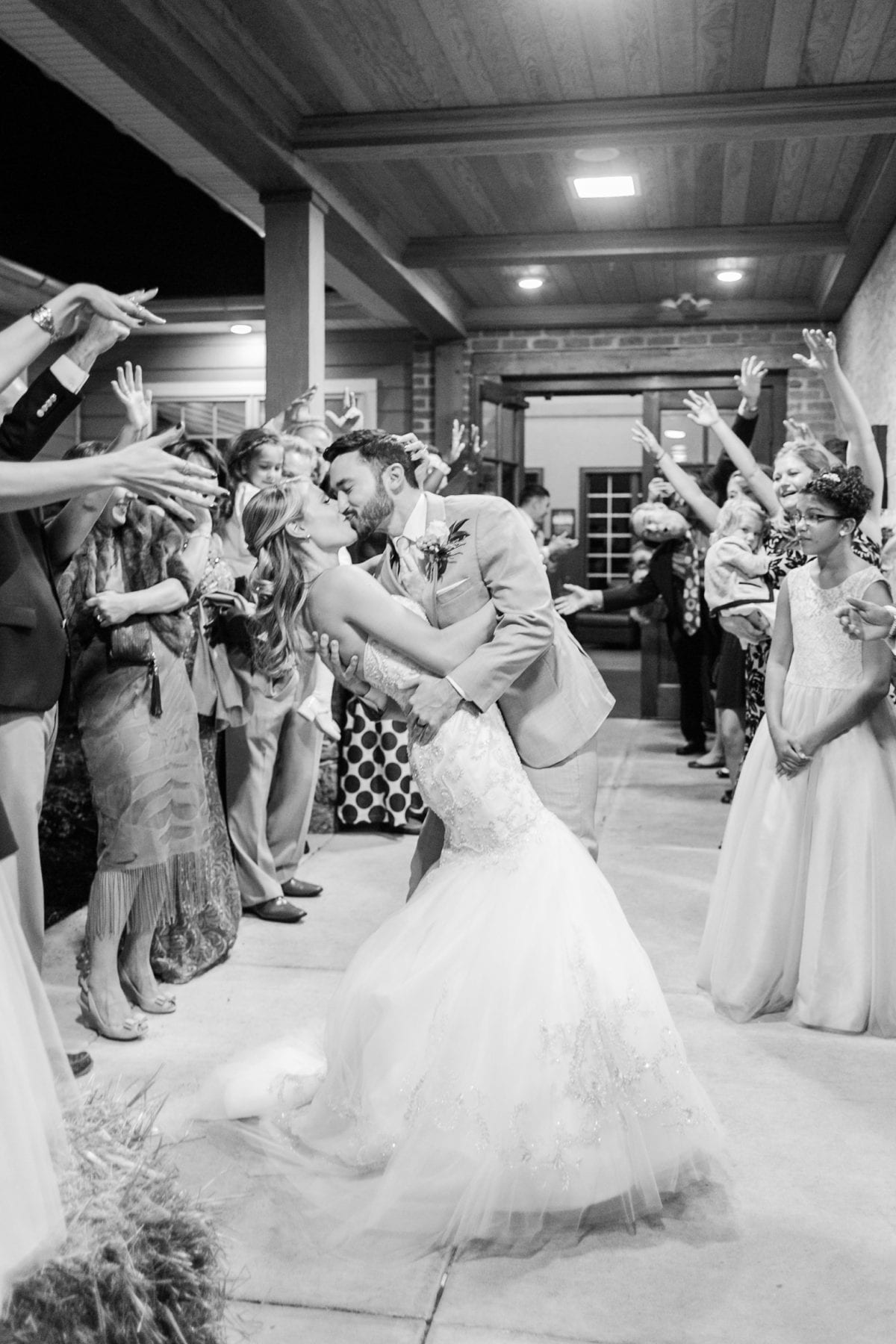 24. The bride and groom send off. (Even if there are no sparklers, ribbons, glowsticks, or light-up items of any kind… it’s still fun to get your guests outside to see you off as husband and wife! I love how this send-off came out and it didn’t have any materials at all other than excited guests and a really happy bride and groom!)