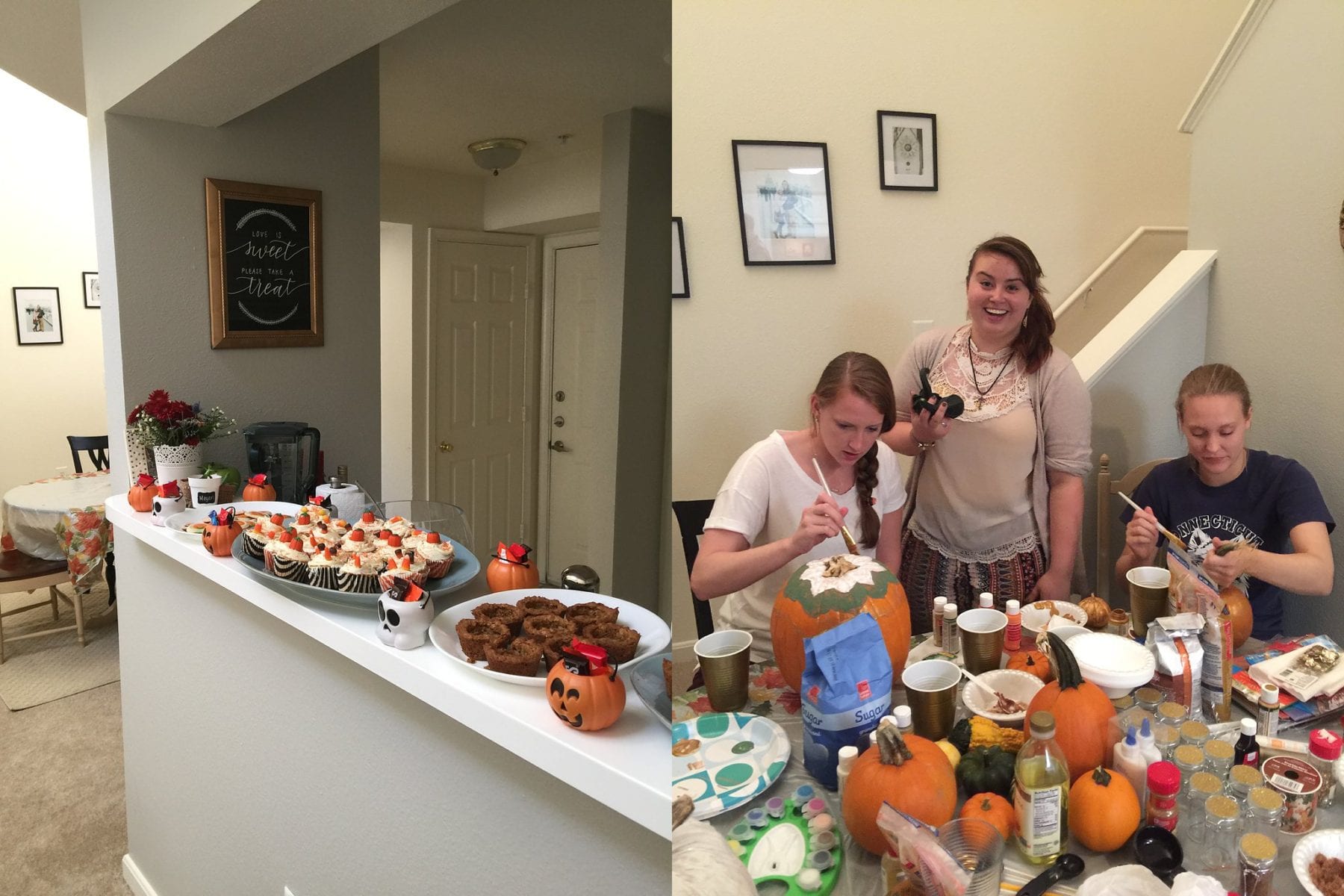 4) Having friends and family over to visit! One of the things I was really looking forward to once we had our own place was inviting people over to hang out and stay with us! A few Monday’s ago we had a little “Fall Party” and had about 15 friends over for some pumpkin cupcakes, apple crisps, caramel apple sangria and of course some of my favorite buffalo chicken dip and we just did some Fall themed crafts like decorating/carving pumpkins and making pumpkin spice latte sugar scrub and played some Halloween movies in the background and it was so fun. The best part was we had not one but TWO friends (my best friend Emily staying with us and Joey visiting his family!) in town from California at the time so it was awesome timing!!! I’m happy to say we’ve had someone over just about every week since we got married and we wouldn’t have it any other way!! We may only have a one-bedroom but our couch is comfier than our own bed and we’ve had plenty of people agree! One day we’ll have an actual guest bedroom to house people in but for now it is SO fun having people camp out in the living room… it feels like a slumber party!! I treasure these days and memories and can’t wait for our next guest(s) to visit!! :)
