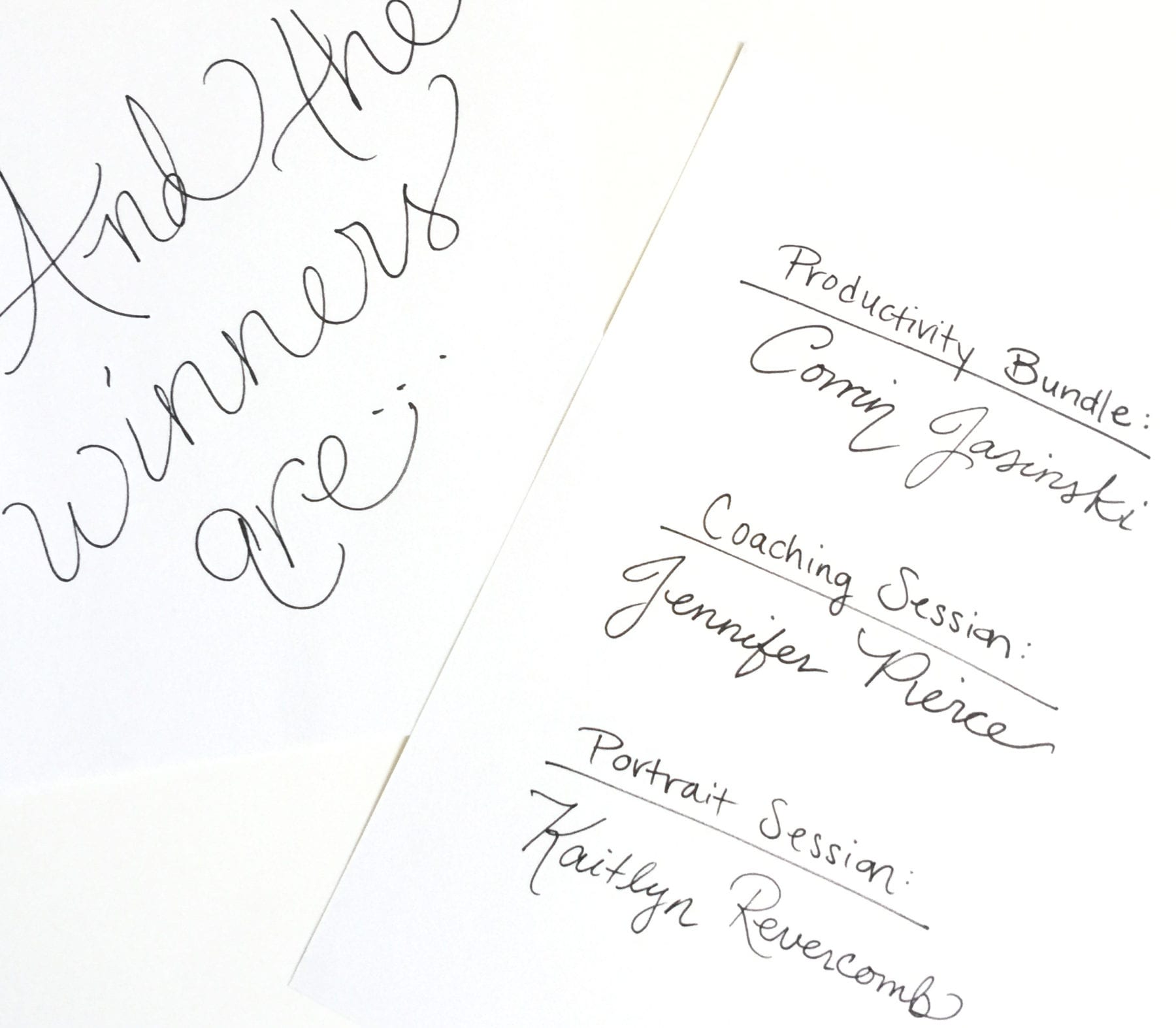 So without further ado, here are the WINNERS of the Productivity Bundle, Coaching Session, and Portrait Session giveaways!!! I had so much fun, there just might be more giveaways in the future!!! ;) Congratulations to all of the winners, and thank you again to everyone who participated!!